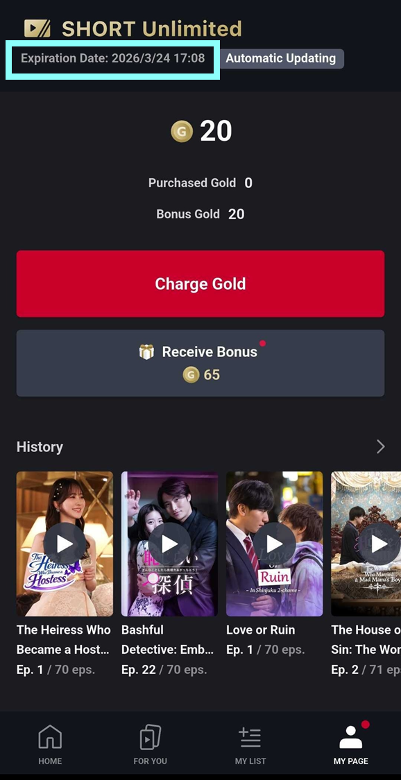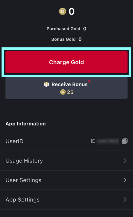 1. Go to My Page > "Charge Gold."