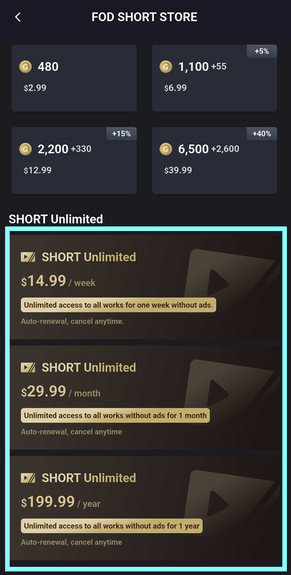 2. Select a one-week plan or a one-month plan and complete the payment.