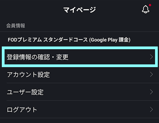 1.Android端末のFODアプリにて、「マイページ」より、「登録情報の確認・変更」を押します。