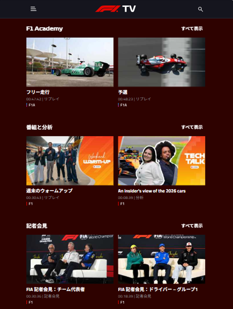 「F1® TV」内で配信されている各コンテンツを視聴することができれば、ID連携は正常に完了しています。