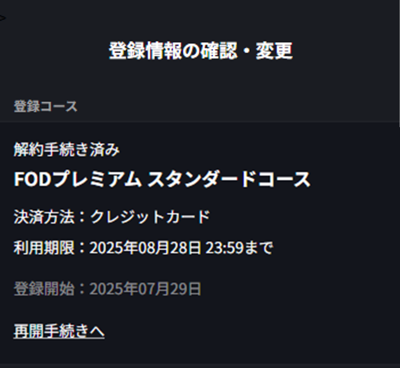 契約期間内に同じFODアカウントで再登録された場合は、新たなお支払いはございません。