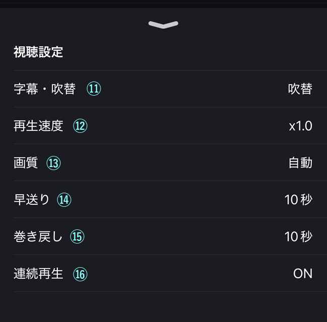 ⑥次のエピソードへ ドラマやアニメなど複数話配信がある場合、次話へ連続再生できます。