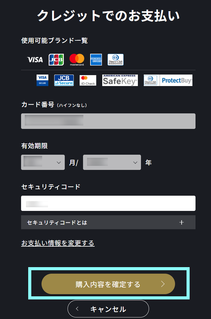 8.カード情報を入力し「購入内容を確定する」を押します。